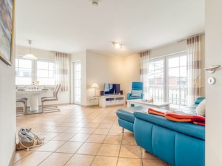 Die Ferienwohnung bietet auf ca. 71 qm Wohnfläche Platz für bis zu 4 Personen.\nSie ist ausgestattet mit zwei Schlafräumen (1x1 Doppelbett, 2x1Einzelbett), einem Wohnbereich mit Küchenzeile, sowie einem Bad mit Dusche und WC und...