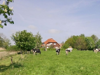 Die Wohnung ist sehr sauber und gut ausgestattet. Fehlt etwas, besorgt Didi es sofort. Am Anreisetag wurden wir zum gemütlichen Tee trinken in Ihre Wohnung eingeladen. Didi kommt täglich vorbei, um zu sehen, ob alles in Ordnung ist und die Gäste zufrieden sind. Einmal in der Woche werden die Gäste zum Grillen eingeladen. Gastfreundschaft wird bei den Beiden sehr groß geschrieben. Manfred begrüßt die Gäste auf seinem Hof sehr freundlich und zeigt gerne seinen Stall mit den ca. 100 Kühen und der Melkanlage. Der Hof ist der letzte auf der Straße. Außer den Kühen, dem Hofhund und den benachbarten Schafen hört man nichts. Auf der Liege unter dem Apfelbaum kann man gut entspannen. Die Nordsee ist schnell erreicht. Der Preis für die Wohnung ist angemessen. Wir freuen uns auf den nächsten Urlaub. Alles Gute von G+B