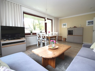 Die helle und gemütliche 3 Zimmerwohnung ca. 70 m² für 1-4 Pers. im Hochparterre verfügt über ein Wohnzimmer mit Flachbild TV, Radio, Esstischgruppe und Zugang zum Südbalkon, einen Schlafraum mit Doppelbett, ein Schlafzimmer mit getrennten Betten,...