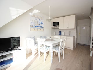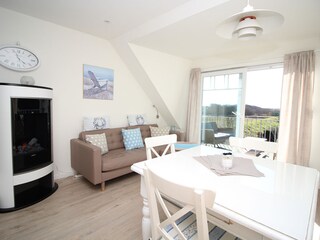 Die Wohnung ist sehr hell und gepflegt. Wir hatten vom Wohn- und Essbereich einen tollen Blick über die Felder und Wiesen. Auf dem Balkon konnten sowohl Morgensonne als auch am Nachmittag genießen. Mit dicker Jacke geht das auch im Februar. Die Ausstattung der Wohnung ist gut und die Einrichtung liebevoll gewählt. Alles passt gut zueinander. Im oberen Schlafbereich ist die Beleuchtung sehr einladend. Es gibt dort einen abgetrennten Bereich mit Couch. Optimal zum Lesen und Relaxen. Nach unseren langen Spaziergängen haben wir uns auf die kuschelige Wohnung gefreut. Das Personal der Vermietung Jacobsen ist überaus freundlich gewesen. Wir kommen gerne in der Nebensaison auf die Insel. Da kann man die Insel ganz besonders genießen. Wir kommen gerne wieder!