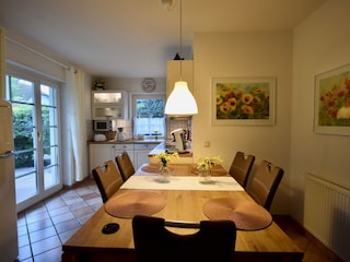 Ferienwohung im Erdgeschoß, 2 Schlafzimmer, geräumiger Wohn-Eßbereich, Terrasse, Duschbad. Küchenzeile mit Mikrowelle, ausreichend Geschirr, Geschirrspüler. Wahlweise Senseo- oder Kaffeemaschine. Flachbildschirm 48zoll. Alle Fenster haben Rolladen und Fliegennetze. Wlan kostenlos verfügbar. Fahrradabstellraum mit Bollerwagen und...