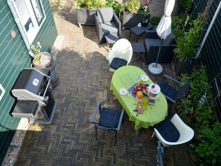 Entspannen Sie sich mit Gartenmöbeln, Liegen und einem Holzkohlegrill.