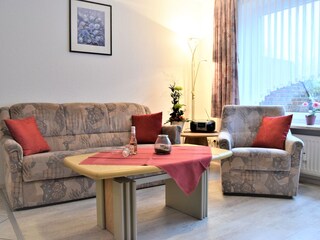 Es erwartet Sie die gemütliche Wohnung Schäfer I. Erholen Sie sich in 2 Raum Ferienwohnung in absolut ruhiger Südlage mit herrlichem Gartenblick.