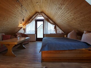 Die Ferienwohnung im Dachgeschoß bietet mit ca. 100 m² viel Platz auf einer Ebene und ist für bis zu 5 Personen geeignet.