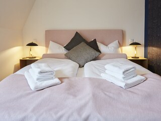 Die Ferienwohnung im Dachgeschoß bietet mit ca. 100 m² viel Platz auf einer Ebene und ist für bis zu 5 Personen geeignet.