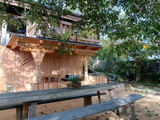 Offene und geschützte Sitzgelegenheiten im Außenbereich