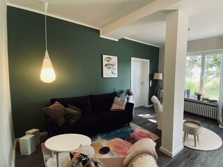 Ferienwohnung auf Gartenebene Unser "Traumprinz" bietet mit rund 85 Quadratmetern Platz für zwei bis drei Personen (ein Doppelbett im separaten Schlafzimmer, ein bequemes Schlafsofa im Wohnzimmer ohne Verdunkelung). Zusätzlich stehen dir ein geschmackvoll eingerichtetes Wohnzimmer, eine offene Küche...