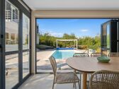 Villa ART ist eine moderne Villa mit privatem Pool, Whirlpool, Sauna und Meerblick und bietet komfortable Unterkunft für 9 Personen im 5 Shlafzimmern.