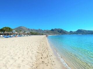 Der Strand von Puerto Pollensa ist ideal, um sich in der Sonne zu entspannen oder um aktiver Wassersportarten wie Kajakfahren, Windsurfen oder Jetski zu betreiben.