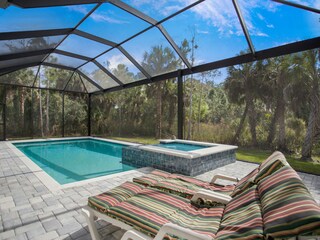 Genießen Sie den Pool, den Whirlpool und die Außenküche für ultimative Entspannung.