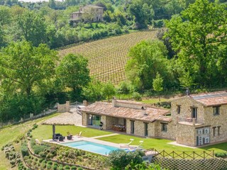 In sehr ruhiger Alleinlage und mitten im Grünen von Umbrien liegt dieses alte Natursteinhaus. Genießen Sie den Ausblick am privaten Pool.