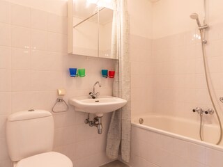 Im Wohnzimmer mit Laminatboden befindet sich eine gemütliche Sitzecke mit Tv (digital). Die offene Küche ist ausgestattet mit 4 Induktionskochfelden, Kühlschrank, Spülmaschine, Mikrowelle, Toaster, Wasserkocher und Kaffeemaschine. Essbereich für 4 Personen. Es gibt 2 Schlafzimmer, von...
