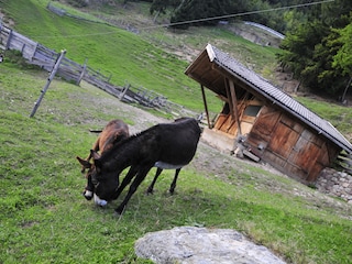 Wir halten Kühe, Pferde, Schafe, Hühner, einen Hund...