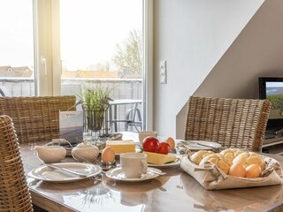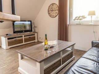 Eine sehr gepflegte, helle und mit viel Liebe eingerichtete Ferienwohnung. Das Schlafzimmer unter dem Dach ist sehr hell und ansprechend. Der Balkon mit dem Strandkorb ist geräumig und nett eingerichtet. Die Lage ist zentral, die Geschäfte sind leicht erreichbar. Eine empfehlenswerte Unterkunft.