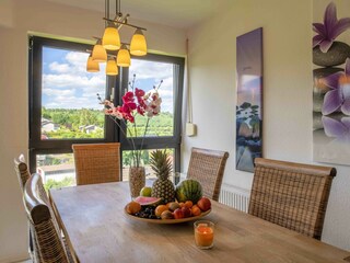 Die Ferienwohnung und das Haus (Maarberg Resort) liegen am Hang in einem sehr ruhigen Wohngebiet. In Blickrichtung des Sees. Hinter dem Haus finden Sie nur Wälder und Wiesen.