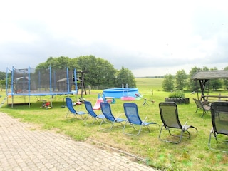 Ihre Kinder werden den Spielplatz mit einem Trampolin und einer Sandkiste lieben.