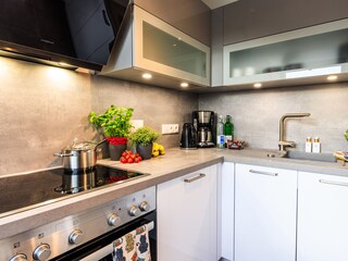 Das schöne Wohnzimmer hat eine gemütliche Sofalandschaft und einem Fernseher zu bieten. Die voll ausgestattete Küche lädt...