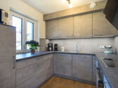 Herzlich Willkommen im BergZwerg. Im 1. OG gelangen Sie in Ihre Wohnung. Hier befindet sich die Garderobe, der Wohn/Essbereich mit zwei türkisfarbenen Sesseln mit Fußhocker und die offene Küche mit Ceranfeld, Dunstabzug, Backofen, Spülmaschine, Kühlschrank mit Gefrierfach...